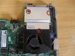 Снимите три винта, удерживающие радиатор на материнской плате (серебристые винты, 4 мм)