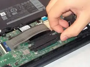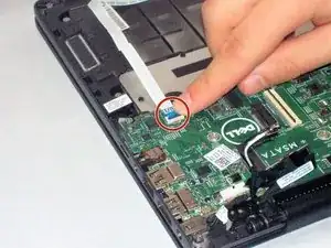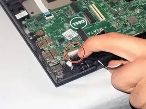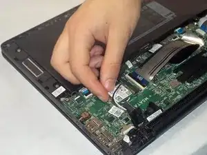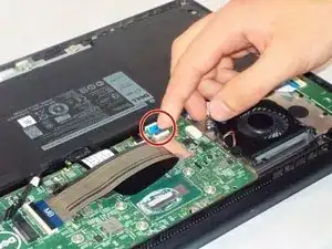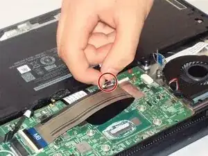 Потяните за язычок разъёма, чтобы освободить кабель тачпада.