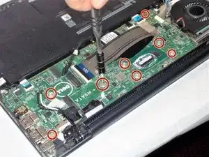 Удалите восемь винтов 2 мм, фиксирующих материнскую плату.