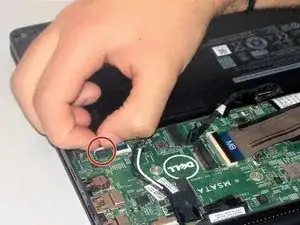 Отсоедините кабель индикатора зарядки светодиода, потянув вверх за разъём.