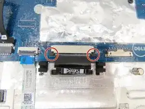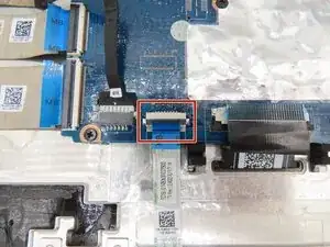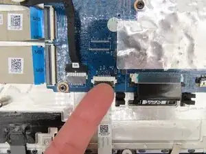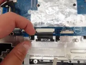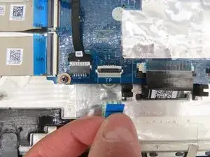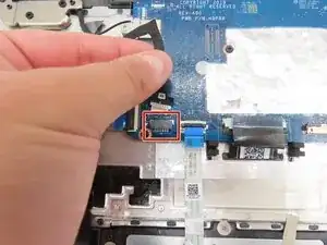 Подденьте серый фиксатор кабеля тачпада пальцем или монтажной лопаткой, чтобы поднять его вверх.