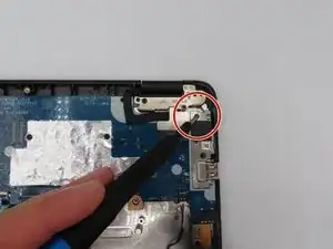 Отверткой Phillips #0 снимите 3 мм винт, удерживающий металлическую пластину, прикрывающую модуль беспроводной связи.