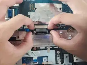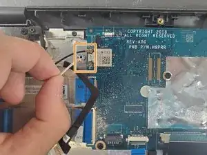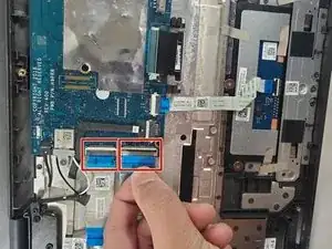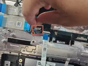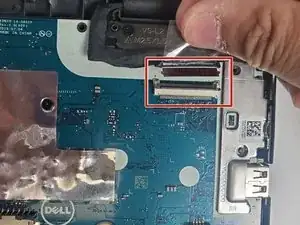Отключите кабель дисплея от материнской платы, используя пластиковую лопатку для открывания.