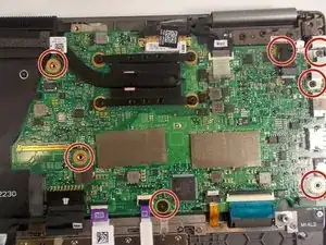 Снимите семь винтов 2 мм, крепящих материнскую плату.