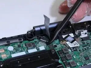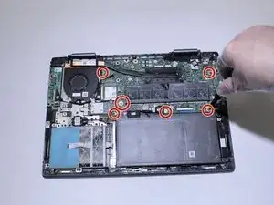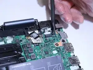 Извлеките материнскую плату, приподняв её сзади, а затем полностью удалив из ноутбука.