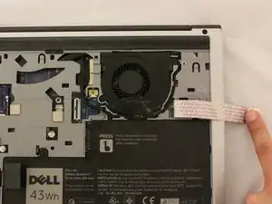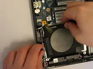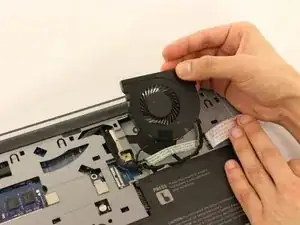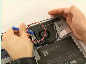 Используйте пинцет, чтобы удалить маленький кабель, крепящийся к вентилятору.