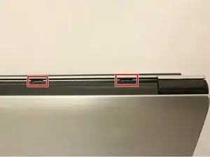 Найдите два черных (8.70 мм) винта на шарнирах ноутбука и открутите их.