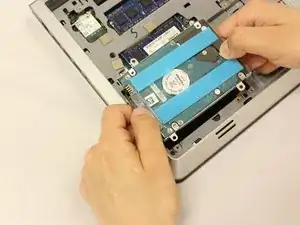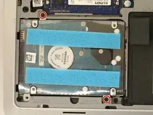 Найдите и открутите черные винты (5.70 мм) в верхнем левом и нижнем правом углах жесткого диска.