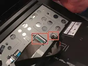 Найдите два разъема кабелей. Эти разъемы удерживают кабели на ноутбуке с помощью небольших замковых флапов.