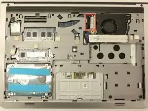 Найдите радиатор. Это будет черная металлическая планка в верхней части ноутбука, которая закрывает материнскую плату.