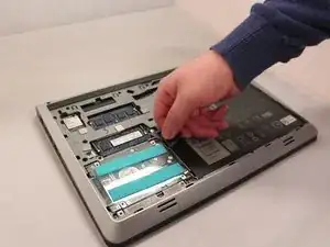 Переверните ноутбук вверх дном, чтобы получить доступ к батарее.