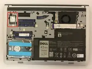 Удалите один серебряный винт Philips #1 длиной 2.9 мм, который крепит карту WiFi.