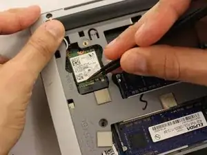 Используйте пинцет, чтобы подтолкнуть белую часть карты Wi-Fi вверх к верхней части устройства для удаления.