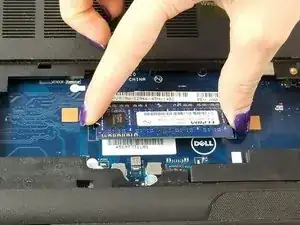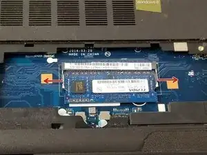 Извлеките модуль оперативной памяти, раздвинув защёлки, удерживающие его на месте.