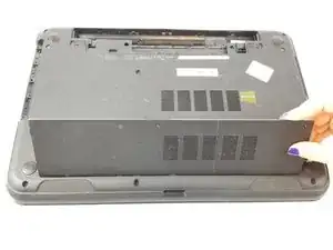 Удалите четыре винта 1,22 мм, крепящие заднюю панель к ноутбуку, используя отвертку PH0.