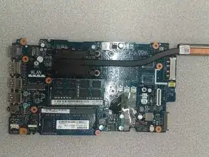 После отключения вентилятора от материнской платы извлеките вентилятор из паза. Внешний вид Вашего ноутбука теперь должен быть аналогичен изображённому на этом шаге.