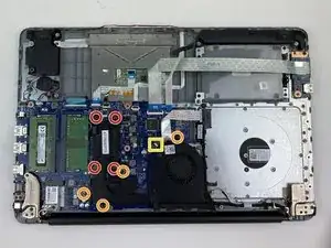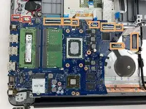 Материнская плата соединяет все компоненты на одной плате; поэтому у неё много кабелей и разъёмов, которые необходимо отключить для замены материнской платы. Рекомендуется возвращаться к фотографиям и внимательно их изучать. На них указано, какие кабели отключать. Это также важно при сборке платы обратно.
