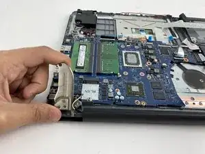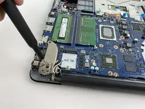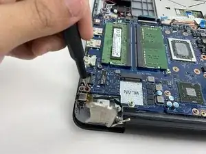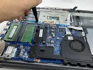 Выверните один винт M2.5x5мм, удерживающий материнскую плату, крестовой отвёрткой Philips #0.