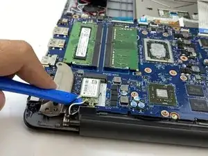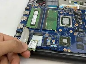 Выдвиньте беспроводную плату из её разъёма и поднимите её вручную, затем снимите.