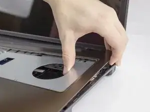 Используйте металлическую лопатку, чтобы ослабить основную рамку клавиатуры.