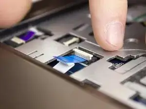 Поднимите фиксирующую планку, удерживающую ленточный кабель.