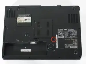 Удалите два винта Phillips #1 с левой стороны компьютера, прямо над отсеком для аккумулятора.
