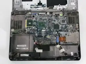 Осторожно извлеките материнскую плату из ноутбука, одновременно приподнимая и отводя её в сторону краёв.