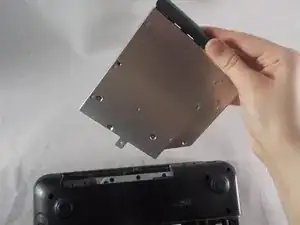 Открутите два винта 2×3 мм внутри отсека дисковода.