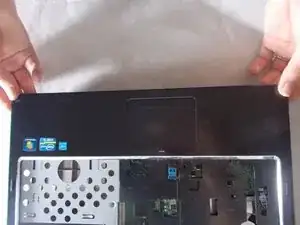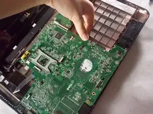 Поднимите её, чтобы отделить от других внутренних компонентов, затем потяните вправо, отводя от корпуса.