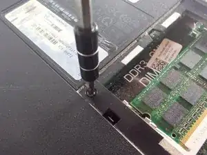 Открутите винт 2,5×5 мм внутри отсека оперативной памяти.
