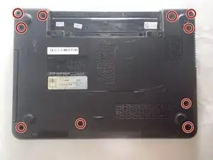 Выкрутите 10 винтов 2,5×5 мм с основания ноутбука.