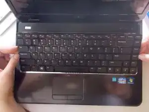 Используйте пластиковую раздвижную лопатку, чтобы начать снятие клавиатуры.