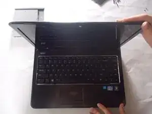 Вытяните аккумулятор из ноутбука до полного извлечения.