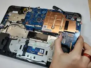 Используйте крестовую отвёртку Phillips #0, чтобы отвинтить винт 3 мм, крепящий SSD.