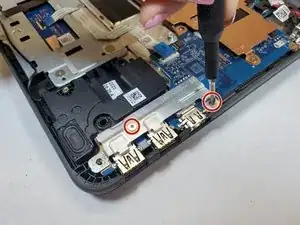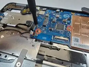 Используйте крестовую отвёртку Phillips #0, чтобы отвинтить пять винтов 3 мм, крепящих материнскую плату.