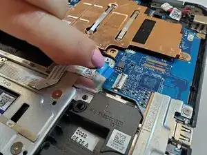 Потяните синий язычок, чтобы извлечь шлейф из разъёма.