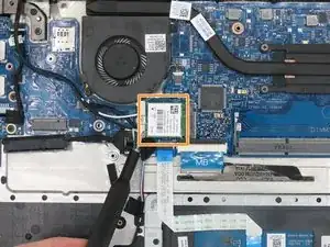 Открутите один винт длиной 3 мм от платы WLAN с помощью отвертки Phillips #0.