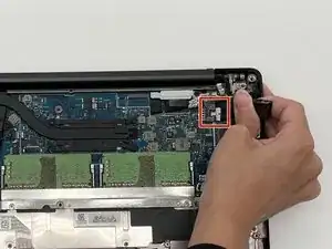 Осторожно потяните прямо вверх за язычок разъёма дисплея, чтобы отключить его.