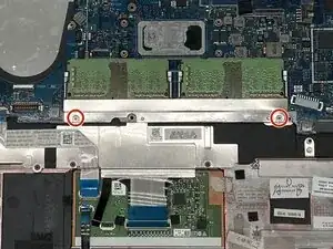Снимите два винта Phillips на металлическом кронштейне под модулями ОЗУ.