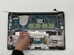 С помощью лопатки аккуратно поднимите WLAN-карту и извлеките её.