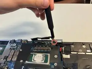 Открутите винт длиной 5 мм, удерживающий плату Wi-Fi, с помощью отвёртки Phillips #0.