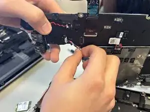 Тяните, чтобы отключить провода, ведущие к динамику.