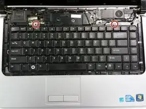 Используя крестовую отвертку, выверните два винта, крепящих клавиатуру к корпусу.