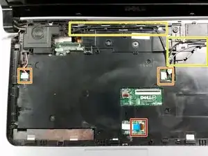 Серебристая и чёрная верхняя панель (которая удерживала/окружала клавиатуру) предназначена для снятия как единое целое. Старайтесь не поднимать только серебристую часть, это повредит пластиковые штыри, удерживающие её.