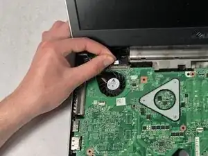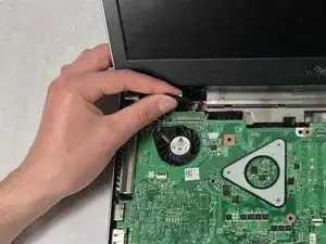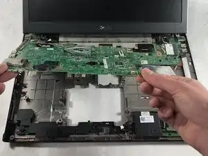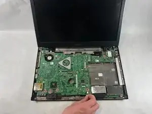 Поднимите материнскую плату вверх, чтобы извлечь её из корпуса ноутбука.