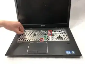 Снимите панель под ладони, чтобы получить доступ к материнской плате.