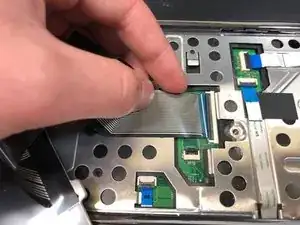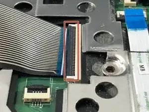 Поднимите чёрную планку в разъёме ленточного кабеля клавиатуры вверх, чтобы освободить кабель.