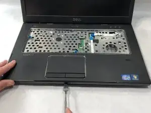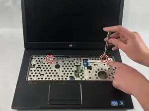 Используйте металлическую лопатку, чтобы освободить панель под ладони от остальной части ноутбука.