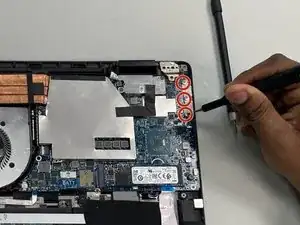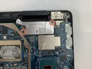 Используйте отвертку Phillips #0 для снятия двух винтов из нижнего угла материнской платы.