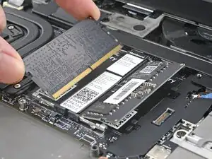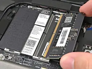 Выдвиньте планку оперативной памяти из её разъёма и снимите её.